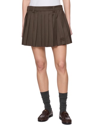 Miu Miu 这款百褶短裙以挺括面料衬出利落褶裥,迷你长度添俏皮感,低调标识细节藏质感。搭休闲卫衣显甜酷反差,配精致衬衫衬优雅,是日常出街与轻造型场合都适配的活力款。