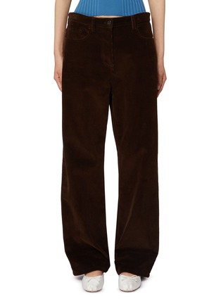 Miu Miu 擅用色彩与细节营造甜酷氛围,风格鲜活而精致。这款直筒裤以宽松剪裁塑造休闲廓形,质感灯芯绒结合利落线条,展现复古格调与舒适穿搭的平衡。