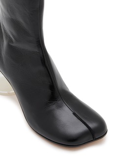 MM6 Maison Margiela 注重在实验精神和实用主义之间追求平衡。这款高跟鞋以质感皮革勾勒分趾轮廓,透明鞋跟的拼接带来时尚幻视,踏出街头个性步履。