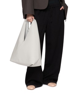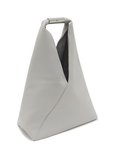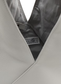 Discover the epitome of minimalist chic with the MM6 Maison Margiela grey leather tote. This sophisticated accessory showcases a sleek, triangular silhouette paired with a striking silver-toned metal handle, blending functionality with avant-garde aesthetics. Crafted from luxurious grey leather, the bag's spacious interior is perfect for accommodating your daily essentials.