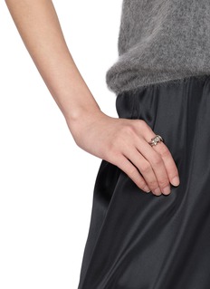 MM6 Maison Margiela 注重在实验精神和实用主义之间追求平衡。这款戒指采用扭结造型,模糊金属的坚硬印象,挑战时尚常态。