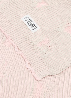 MM6 Maison Margiela 注重在实验精神和实用主义之间追求平衡。这款针织围巾饰有标志性 LOGO 标签,错乱的编织纹理打破日常,挑战时尚常态。