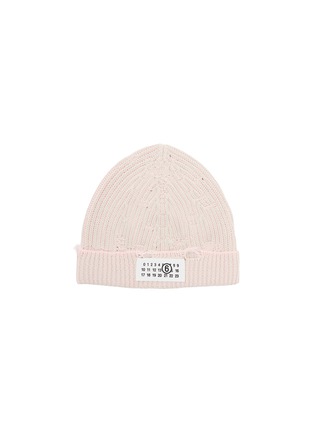 MM6 Maison Margiela 注重在实验精神和实用主义之间追求平衡。这款针织帽饰有标志性 LOGO 标签,错乱的编织纹理打破日常,挑战时尚常态。