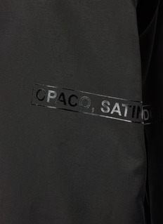 作为风格前卫的著名时尚品牌 Maison Margiela 的副线,MM6 以其运动风格的成衣系列和别出心裁的配饰设计受到时尚圈的瞩目和推崇。这款无袖绉领上衣采用棉质尼龙斜纹布制成。侧面印有印花,背后有侧丝带系带,锁骨处有拉链开合。背后的横向白色缝线是该品牌标志。