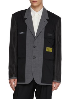 MM6 Maison Margiela 注重在实验精神和实用主义之间追求平衡。这款西服外套以多材质拼接带来独特肌理,标签贴饰更添个性化细节。