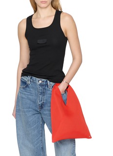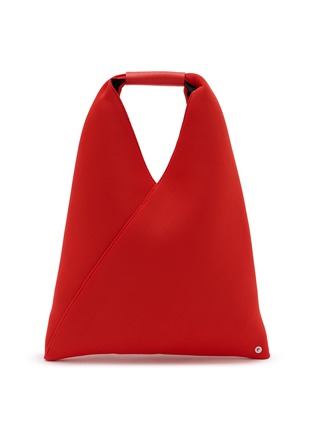 MM6 Maison Margiela's Japanese bag reinterprets traditional design codes with modern architectural precision. The structured triangular silhouette features padded top handle, minimalist construction with exposed diagonal seam detail, and spacious interior. Effortlessly transforms from tote to shoulder style—sculptural simplicity at its finest.
