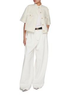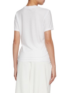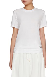 MO&Co.'s essential crew neck tee embodies refined minimalism through its clean lines and premium cotton construction. The subtle branded detail adds understated recognition while the perfect fit ensures versatile styling potential. Pair with tailored separates for elevated casual dressing or layer beneath statement outerwear for textural depth.