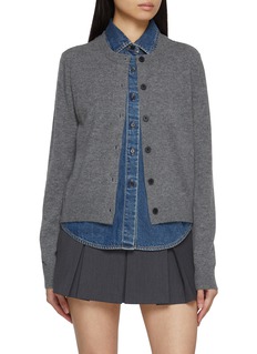 A playful twist on classic layering, this cardigan by MO&Co. creates the striking illusion of a denim shirt worn beneath a fine knit. The contrast of structured indigo and soft heather grey builds a cleverly composed silhouette, offering depth without bulk. Style it with pleated minis or tailored shorts to echo its modern, preppy attitude.