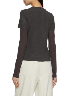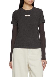 MO&Co. lends a contemporary twist to a wardrobe staple with this double-layer T-shirt, where a fitted long-sleeve base meets a minimalist short-sleeve top. The stacked silhouette adds dimension and edge, anchored by a subtle front logo patch. Wear it with relaxed denim or utilitarian trousers for an effortlessly modern look.