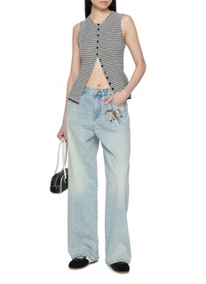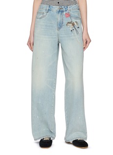 These jeans blend playful nostalgia with a relaxed fit, their light-wash denim adorned with whimsical printed charms. The effortless silhouette and unique detail create a modern, statement-making twist on classic denim. Perfect for the New Year.