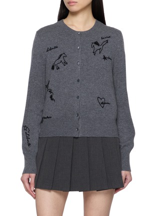Bring in the New Year with this cardigan that blends playful charm with cosy sophistication, featuring delicate black embroidery of horses, stars, and hearts on a soft grey knit. The whimsical details make it a versatile, statement layer for adding a touch of artistic flair to any outfit.