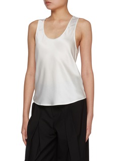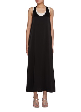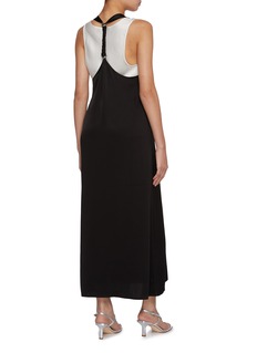 MO&Co.'s minimalist racerback dress embodies effortless sophistication through its fluid silhouette and premium fabrication. The scoop neckline creates elegant framing while the A-line drape offers graceful movement. Pair with metallic accessories for evening refinement or chunky trainers for contemporary urban styling.