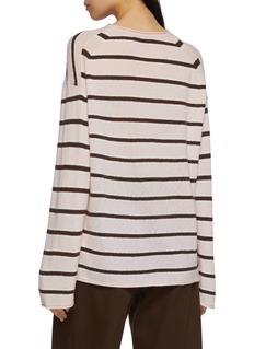 Soft, airy, and effortlessly relaxed, this striped knit top by MO&Co. brings a cosy softness to everyday dressing. The brushed knit texture and fluid drape create a sense of ease, while the wide stripes lend a subtly playful rhythm to the silhouette. Style it with denim or tailored trousers for an undone yet refined off-duty look.