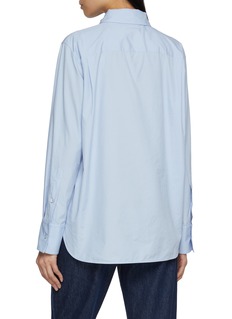Soft tailoring meets subtle drama in this modern cotton shirt. Designed with a crisp pointed collar, it comes with a detachable ribbon tie that transforms the silhouette from clean and minimal to poetically sculpted. Style it with denim or tailoring for a look that shifts effortlessly between classic and expressive.