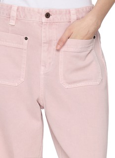 Introducing the MO & CO blush pink jeans, a fresh take on classic denim. These jeans are beautifully crafted from a soft, durable fabric, offering both comfort and style. The light pink hue adds a playful, chic touch to your wardrobe, making them perfect for both casual outings and stylish events. Designed with a straight-leg silhouette, they provide a flattering fit that elongates the legs.