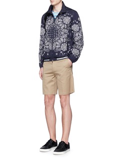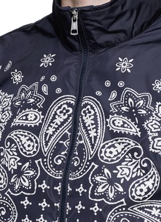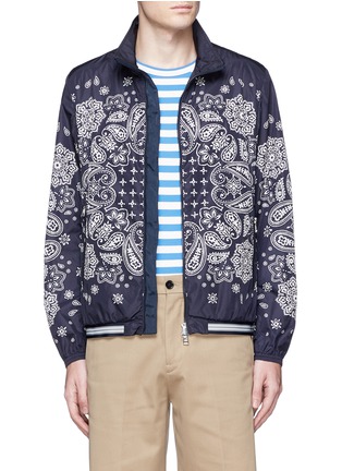 Moncler擅长将运动与时尚相结合,用充满文艺气息的白色班达那印花为这款深蓝色夹克注入夺目纷繁的摩登风格,松紧袖口和条纹松紧衣摆则展现运动活力气息,同时令穿着更方便合身。轻薄面料有效防风,可搭配一条休闲短裤,以个性帅气的姿态出行。
