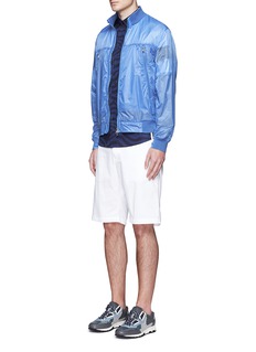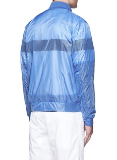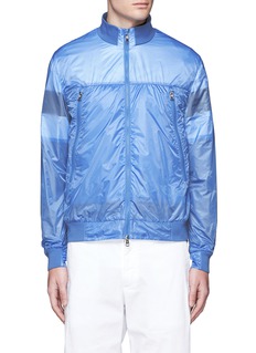 此款Moncler的外套以具透视感的面料制作,透出白色短袖T恤形内衬及黑色条纹图案,玩味十足,质感轻巧,适合作层次混搭之用,天蓝色主调迎合了春夏氛围,彰显您活力年轻一面。