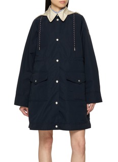 Moncler 这款夹克以多功能性为核心,采用简约外壳搭配可拆卸填充内胆背心。通过按扣细节与连帽腰部抽绳设计,可随环境变化无缝切换轻量防护与额外保暖模式。