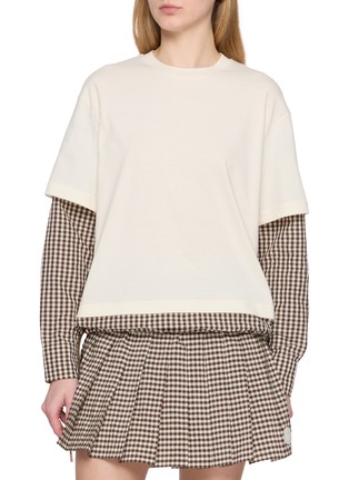 Moncler reinvents your daily dressing with this T-shirt. Uniquely detailed with contrasting gingham sleeves and hem, this piece imbues a playful touch to your edit. Pair with a polo shirt for the ultimate layered look.