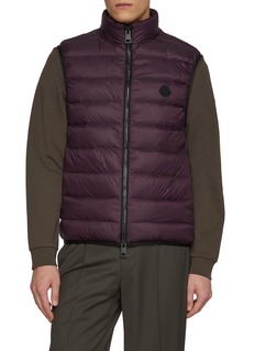 Moncler's quilted down vest features horizontal channel construction for optimal warmth without bulk. The two-way zip closure and stand collar provide customizable coverage, while the tonal logo patch adds subtle brand heritage. An essential layering piece that combines lightweight insulation with timeless versatility.
