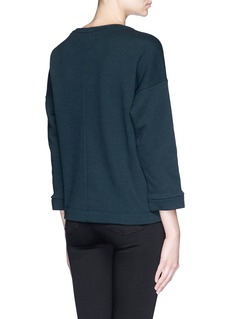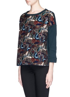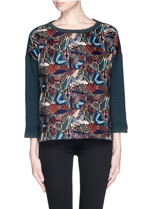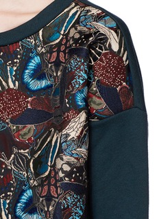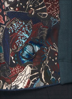 Moncler的服饰兼具时尚度与实用性,这款圆领卫衣以沉实的深绿色拼贴花卉及昆虫提花,做工极为精缴细腻,适合搭配不同下装,打造优雅大气的随性造型。