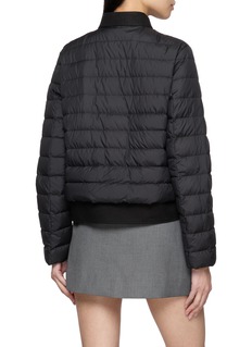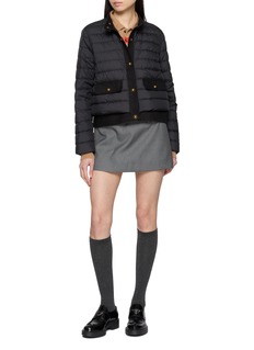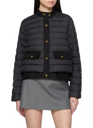 Refined detailing elevates this quilted puffer jacket by Moncler, where lightweight down insulation meets tailored sensibility. Accented with contrasting twill trims and a leather logo, the snap-front design delivers understated structure—ideal for polished layering from weekday dressing to cool-weather travel.