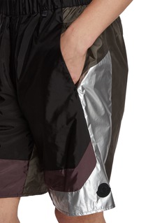 These Moncler shorts are crafted for the dynamic and style-conscious individual, blending high-performance materials with a distinctive aesthetic. The shorts feature a striking colour-block design with metallic and matte finishes, adding a modern, sporty touch to the classic silhouette. Constructed from lightweight, durable fabric, they offer comfort and ease of movement, making them suitable for various activities, from urban exploration to leisurely weekend outings. The elastic waistband ensures a secure fit, while the practical pockets provide convenience for carrying essentials.