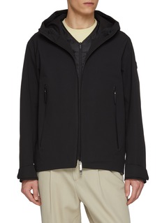 Moncler's technical jacket features a multi-layered construction with a detachable inner vest for adaptable warmth. The double-zip system, buttoned hood adjusters, and angled welt pockets merge functionality with refined minimalism. Engineered for all-weather versatility, this streamlined silhouette delivers sophisticated protection.