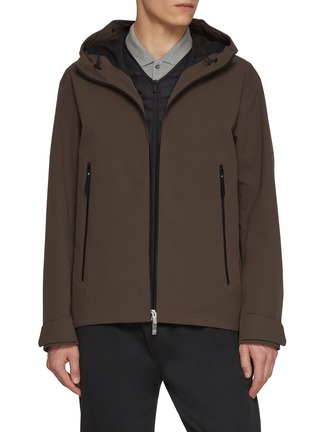 Moncler's technical shell jacket features a removable inner gilet for adaptable layering across seasons. The adjustable hood, contrast zip welt pockets, and streamlined silhouette deliver weather-ready functionality with understated sophistication. Engineered for versatile performance, this 3-in-1 system transitions seamlessly from alpine to urban.