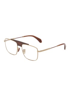 This sophisticated pair of Moncler eyewear, with its sleek gold-toned frames and contrasting brown acetate tips, embodies a refined aesthetic. Designed for both style and comfort, these glasses feature a modern square silhouette that complements any face shape. These frames are perfect for those seeking a blend of contemporary design and classic elegance, ideal for everyday wear or special occasions.