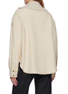 Moncler(盟可睐)以简洁休闲的剪裁与轮廓为单品缔造经典,深受大众喜爱。这款衬衫采用温暖的羊毛混纺面料制成,将经典剪裁与质感魅力细腻融合,毛绒针织领为其增添了柔美触笔。