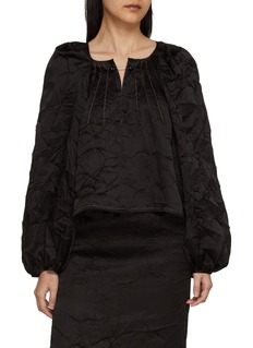 Nackiyé 将历史悠久的传统剪裁注入新的工艺活力,将日常表达推向高潮。这款单品用褶皱肌理营造独特氛围,泡泡袖舒展肩线,短款版型适配高腰下装,可搭配同系列半裙,打造精致又统一的成套造型。
