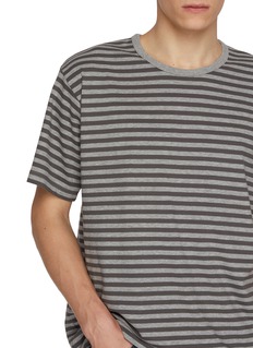 nanamica 将功能、运动及时尚融入系列,致力打造超越时间的隽永产品。这款 T 恤采用以有机棉与 COOLMAX® EcoMade 材质编织而成的平纹针织面料,具有适度的蓬松感与光滑表面质感。简约条纹设计融合摩登休闲格调,轻松点缀都市日常造型
