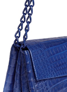 Nancy Gonzalez以亮丽色彩和奢华质感著称,这款单肩包高贵冷艳的宝蓝色让人一见倾心,以珍贵鳄鱼皮精制的包身具有独特触感,细节部分处理细腻,精致贵气可见一斑,是一款独特经典的手袋。