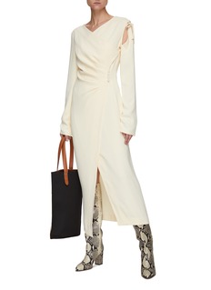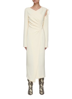 Nanushka以舒适自信的剪裁演绎了轻松自然的新派非正式时尚美感。这款连衣裙采用了优美的褶皱裹身设计,露肩绑带设计再添摄人魅力。流畅利落的版型有助于修饰身形,结合温婉大方的米白色,一展现代都市女郎的优雅迷人魅力。