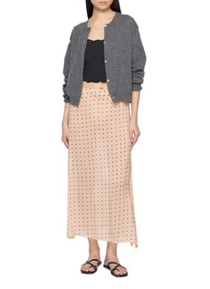 Rendered in a soft blush hue with delicate polka dots, this Natalie Martin skirt moves with fluid ease in airy fabric. Hand-dyed and sewn in Bali, it features a sleek silhouette with a side slit and elasticated back waistband — a refined staple for effortless day-to-night styling.