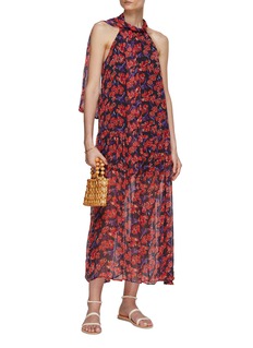 系上系带,花卉犹如瀑布从颈肩流落,在黑夜间嘤啭。娜塔莉·马丁(Natalie Martin)是一位洛杉矶时装设计师,其同名系列于2011年推出。受巴厘岛的古老蜡染印花艺术启发,Natalie 与当地工匠合作,用传统的蜡染和手工丝网印刷实现了其对独特面料和印花的不断追求,每一件作品都满灌着她松弛而有魅力的个性风格。