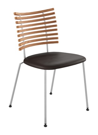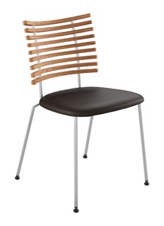 Celebrated for its sculptural restraint, the Tiger chair channels Scandinavian modernism through a gently curved elm slat back and a supple dark brown leather seat. Designed by Henrik Lehm, the stainless steel frame and ergonomic proportions ensure lasting comfort—made for long dinners and everyday elegance.