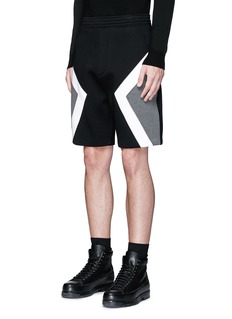 黑、白及灰色是尼奥贝奈特常用的色调,这款太空棉短裤亦以此作主调,配以正面拼接标志性三角形图案,极具辨识度,是打造酷感街头造型的理想搭档。