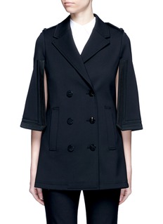 拥有敏锐时尚触觉的尼奥贝奈特,以前卫作风及利落剪裁而闻名。这款双排钮扣外套的最大亮点是通过拼接衣袖塑造出披风式设计,让您的端庄造型顿添时尚气场。