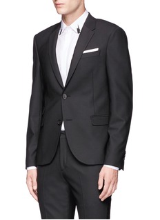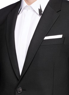 尼奥贝奈特这款修身西服套装采用轻巧舒适的混初剪羊毛面料打造,黑色主调内敛大气,加上一条白色袋巾,瞬间点亮造型,倍显您儒雅绅士的气质。