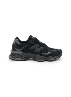 These New Balance sneakers encapsulate a bold, robust aesthetic with their chunky silhouette and all-black color scheme. Crafted with a blend of leather and mesh, these shoes offer both durability and breathability, ensuring comfort throughout the day. The prominent, oversized 'N' logo adds a distinct touch of brand identity, while the thick, sculpted rubber sole provides superior cushioning and traction.