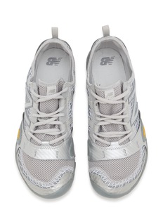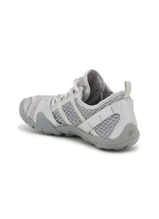 Step up your outdoor adventures with New Balance's lightweight trail running shoes. Expertly designed with breathable mesh and durable synthetic overlays for support, these sneakers feature a Vibram® outsole for exceptional grip on varied terrains. The sleek silver colorway adds a touch of style to your active wear, making them as fashionable as they are functional.