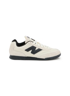 Crafted for the vintage enthusiast with a modern edge, the New Balance sneakers showcase a classic silhouette in a monochrome palette, accented by a bold black "N" logo. These sneakers feature a mix of suede and mesh, providing a stylish yet breathable fit.