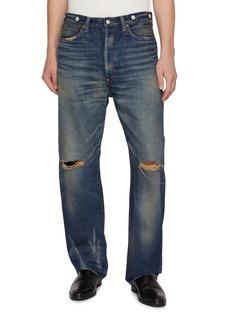 These jeans are tailored to a Japanese fit, with a slightly high rise, straight leg, and gentle taper for comfort. Extra room prevents pinching, while vintage finishing, including match-strike traces, adds an unmatched, authentic flair. These classic 5-pocket jeans are a perfect companion to the #001 jacket.