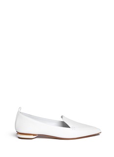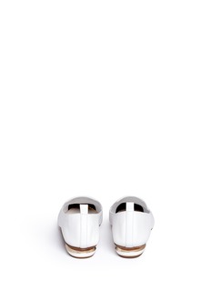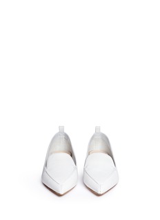 尼可拉斯科克伍德充满建筑感的设计赢得不少掌声,这款乐福鞋是品牌经典款式之一,充满几何感的六角形拼接鞋跟辨识度高,配合流畅的尖头设计,不经意地修饰了腿线,让你打造富有中性魅力的独特造型。