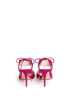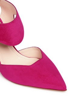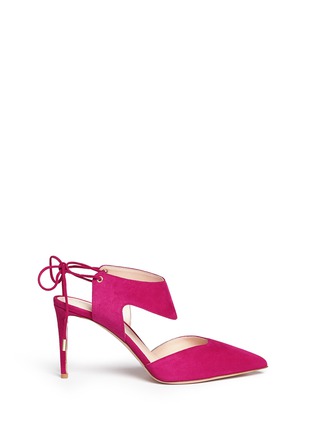 尼可拉斯科克伍德这款高跟鞋展现了品牌标志性的建筑感设计,中央的镂空部分线条独特,富有几何美感,鲜艳的桃红色麂皮与您白皙的肌肤相衬,后部系带设计性感甜美,展现女性优雅魅力。
