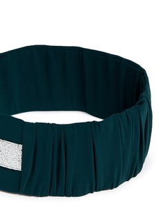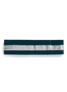 此款NO KA'OI的头带为运动造型注入时尚气息,深绿色主调中加入银色纹理条纹拼接,起了点睛作用之余更具触感变化,松紧设计方便戴上,用作固定松散发丝,让您运动时更轻松自在。