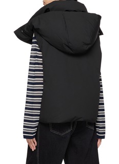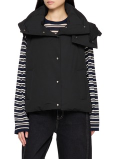 Cocooned in sculptural volume, this puffer gilet distils Noir’s quietly bold aesthetic into a modern winter layer. The oversized funnel-hood design creates an enveloping silhouette that feels both protective and refined—perfect for styling over knits or denim on crisp city days.