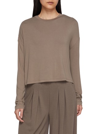 Defined by a softly draped, cropped silhouette, this long-sleeve top offers effortless movement and quiet polish. Designed by Nylora, it layers cleanly over fluid trousers or anchors relaxed looks, transitioning seamlessly from studio wear to refined everyday dressing.